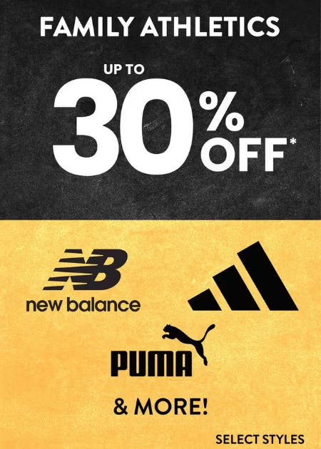 Hurry in and take up to 30% off on family athletics in store for a limited time.