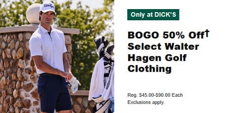 Dick’s Sporting GoodsDon't miss out! Shop in store and enjoy BOGO 50% off select Walter Hagen golf clothing.